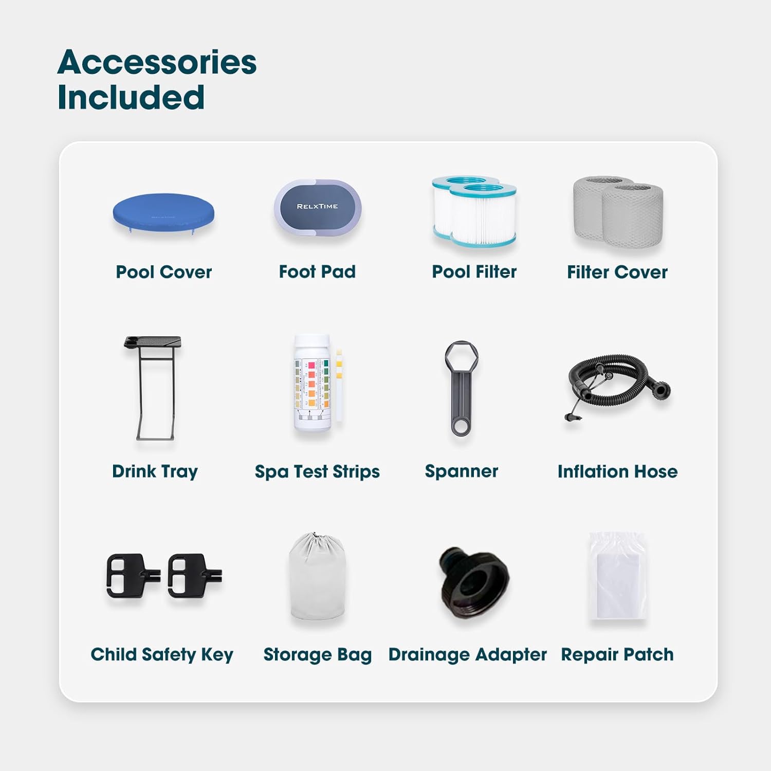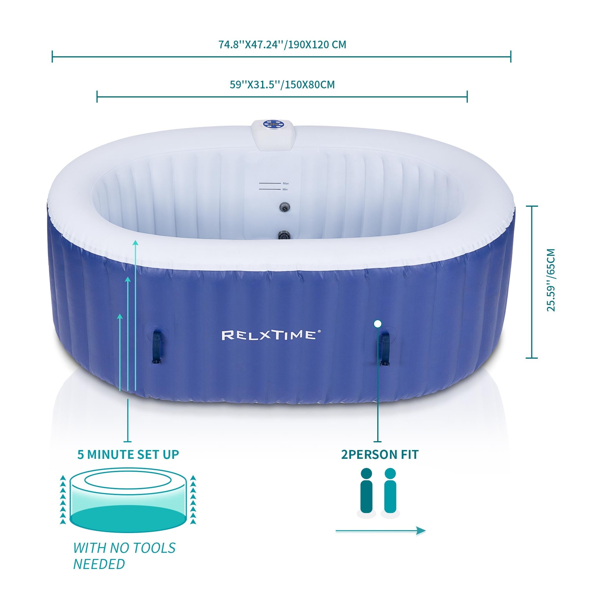 - ❤️ Spa gonflable ovale pour 2 personnes : spa gonflable RELXTIME avec 100 jets à bulles apaisants à haute puissance et un système de filtration d'eau intégré pour garder l'eau à l'intérieur propre.