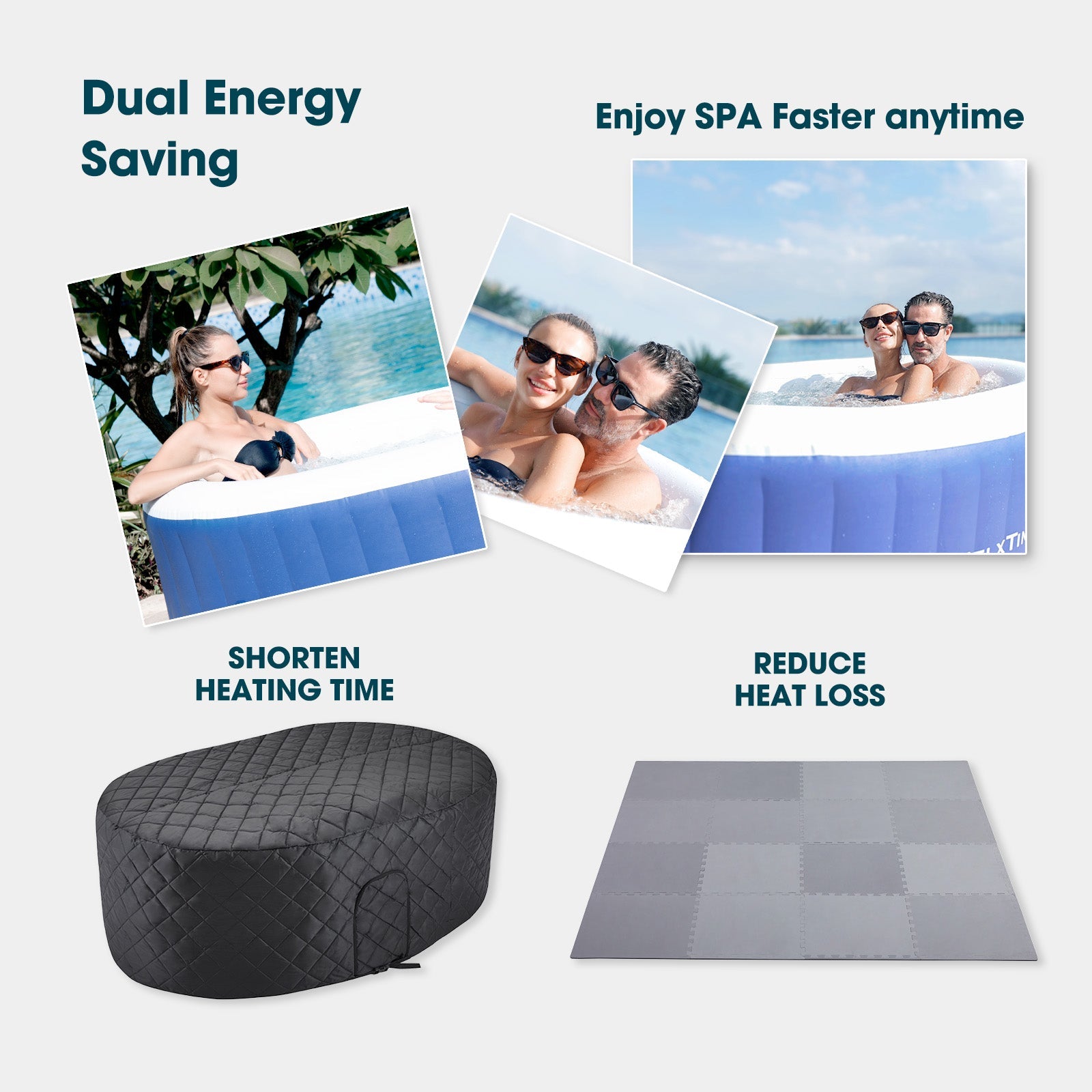 IMPROVES THE HEAT RETENTION: Crafted with high-quality insulated material, our inflatable hot tub thermal cover ensures optimal heat retention, reducing energy costs and maintaining your hot tub's temperature even in cold weather, saving you money on your energy bill all year round.